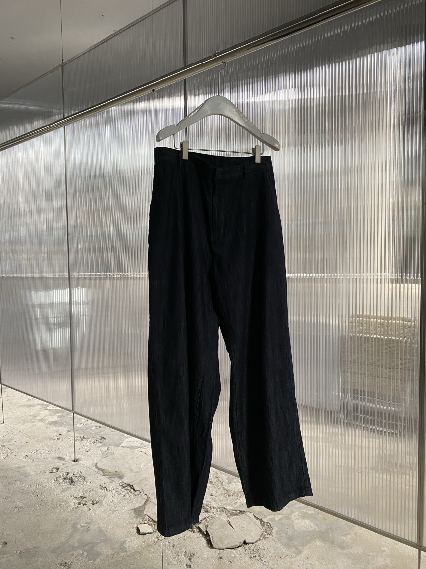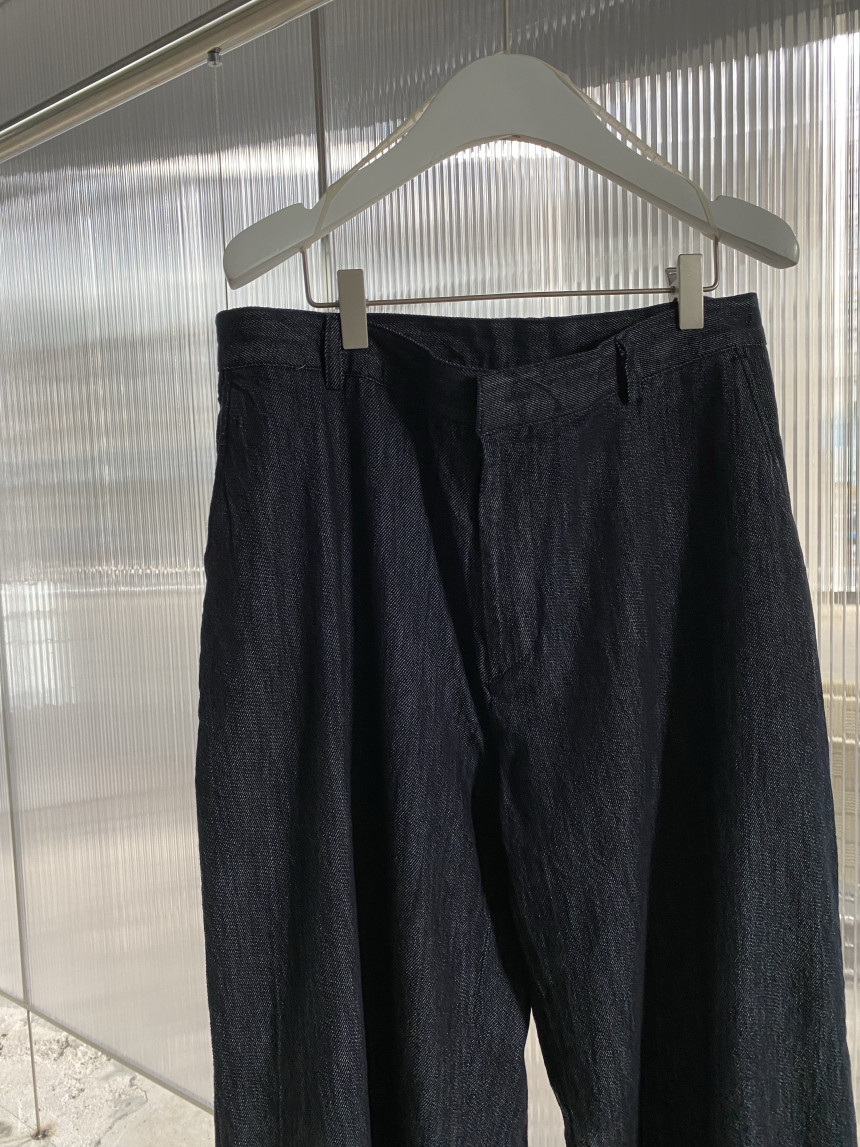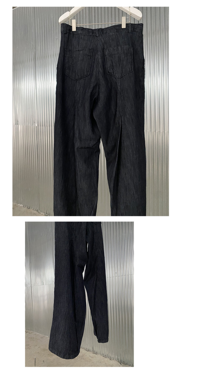 Back pleats linen denim